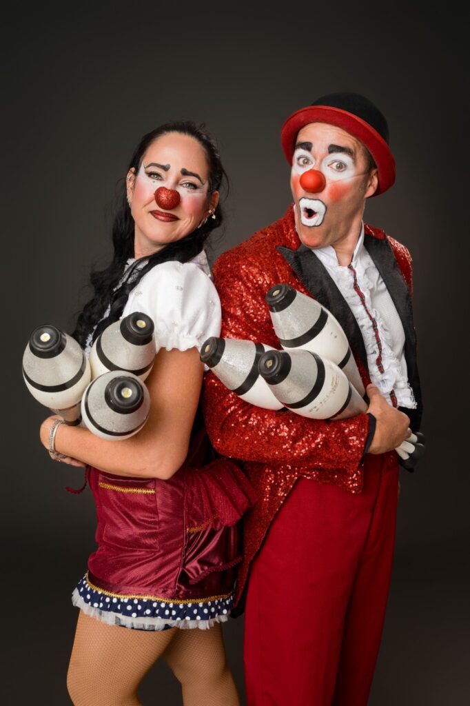 Em cena, os artistas Fábio Brasileiro e Daniella Brasileiro dão vida a personagens inspirados na tradição circense, mesclando humor, técnica e interação com o público. A montagem revisita o universo dos palhaços clássicos e combina números de malabarismo, palhaçaria e chicote, em ritmo dinâmico e visual. Ao final de cada sessão, o grupo realiza uma roda de conversa com os espectadores, promovendo um diálogo sobre o fazer artístico e o cotidiano do circo contemporâneo.