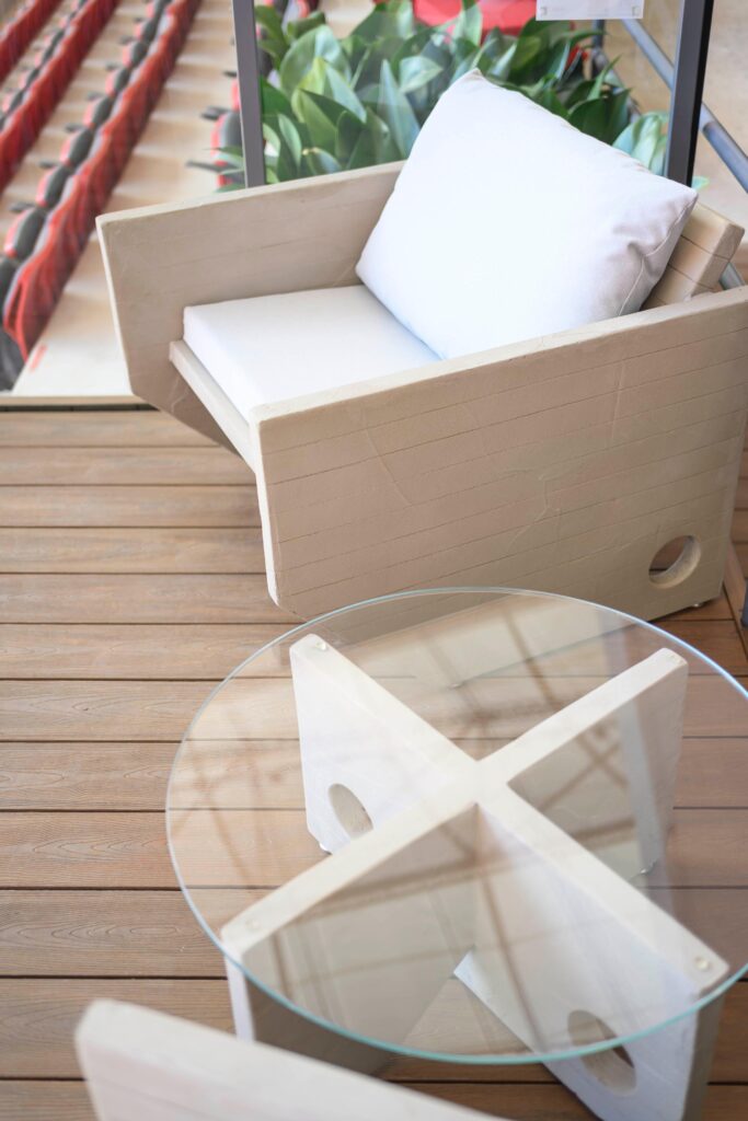 Uma marca que traz no seu DNA inovação, tecnologia e sustentabilidade. Essas são algumas das características da Conviê Design, uma empresa que atua na criação e desenvolvimento de produtos mobiliários para áreas externas. O principal diferencial da marca é a inovação e o uso de um material próprio criado por ela, a partir da reutilização de pneus usados juntamente com outros materiais minerais, que são transformados em uma fibrocerâmica altamente resistente e que contribui com a sustentabilidade, a partir do encapsulamento de CO2 que seria produzido pela queima do pneu descartado no ambiente.