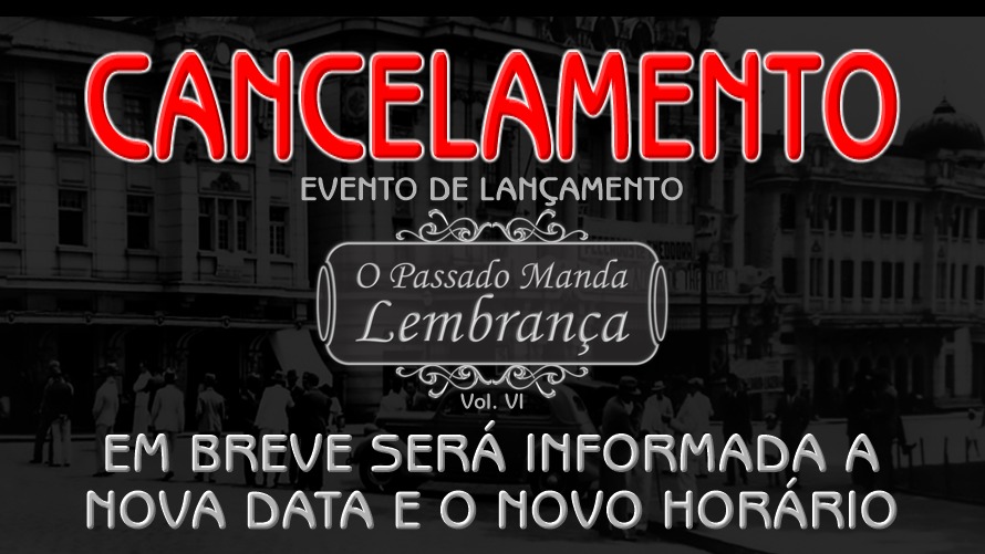 nformamos a todos que, o lançamento do sexto volume da coleção “O PASSADO MANDA LEMBRANÇA” que seria nesta segunda-feira, 10 de março de 2025, às 18h30 no CCP – Centro Cultura Palace ESTÁ CANCELADO e será realizado em nova data e horário a ser informada em breve.