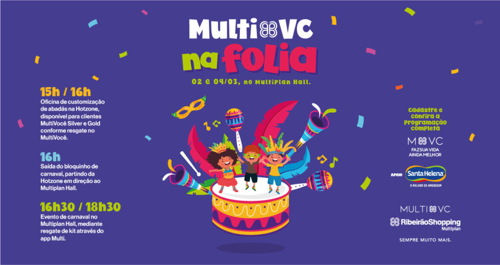 “O ‘MultiVc na Folia’ objetiva oferecer momentos de lazer e interação entre as famílias, reforçando os vínculos por meio da diversão”, destaca Maira Lisa Ferrari, Gerente de Marketing do RibeirãoShopping.