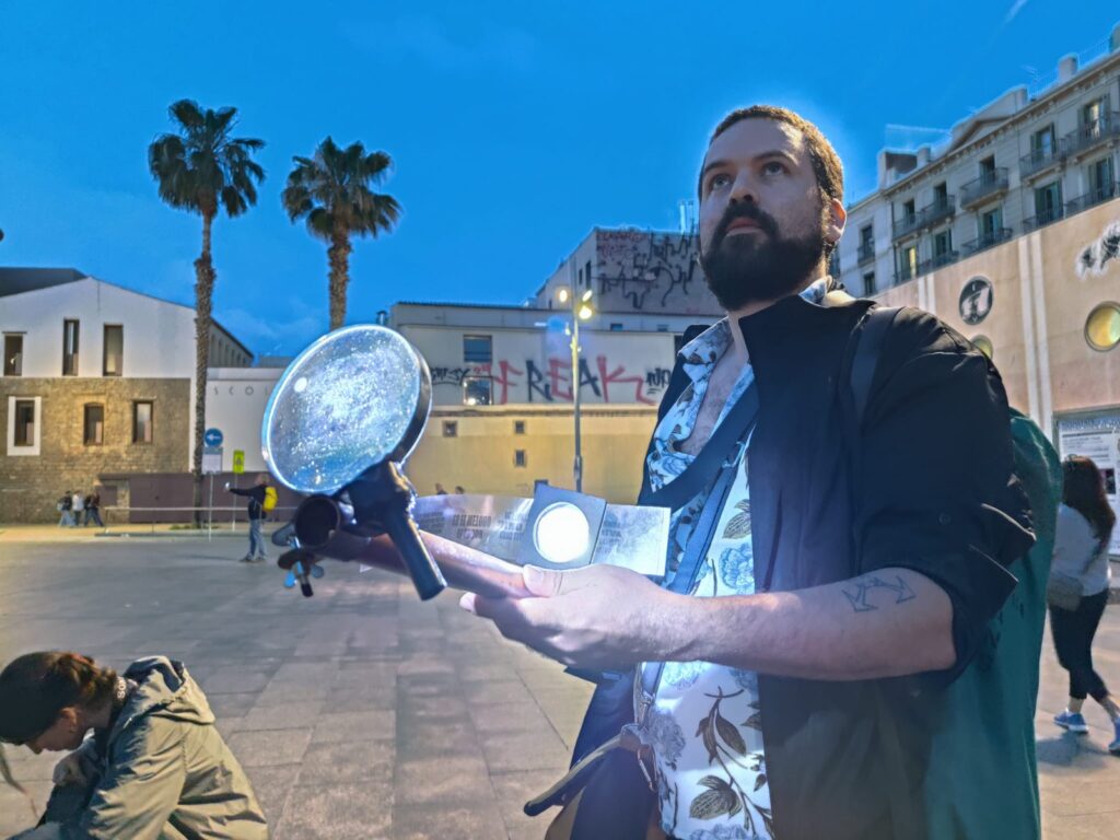 A oficina de Bazucas Poéticas ensinará aos participantes o passo a passo da construção do dispositivo, um projetor analógico portátil criado por Cauê e desenvolvido junto ao Coletivo Transverso. Com ela, poemas e imagens se transformam em intervenções luminosas que ocupam muros, praças e fachadas com palavras de afeto e crítica.